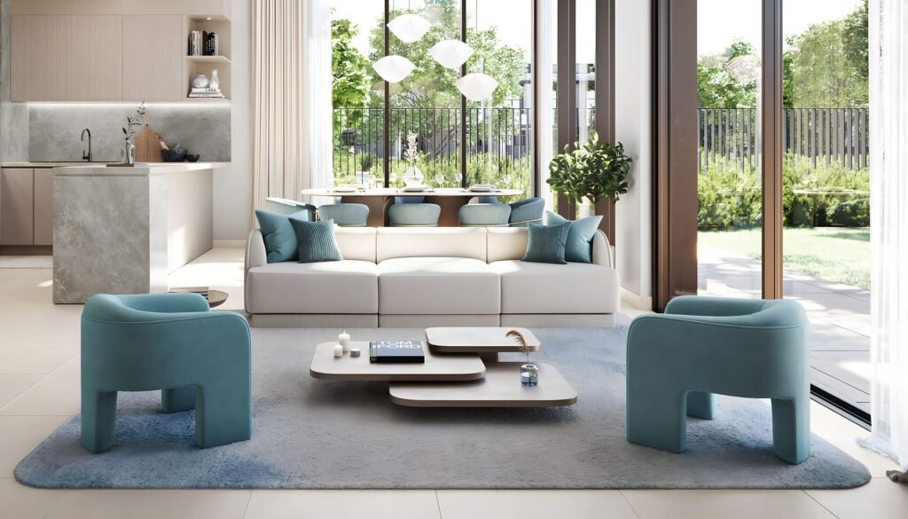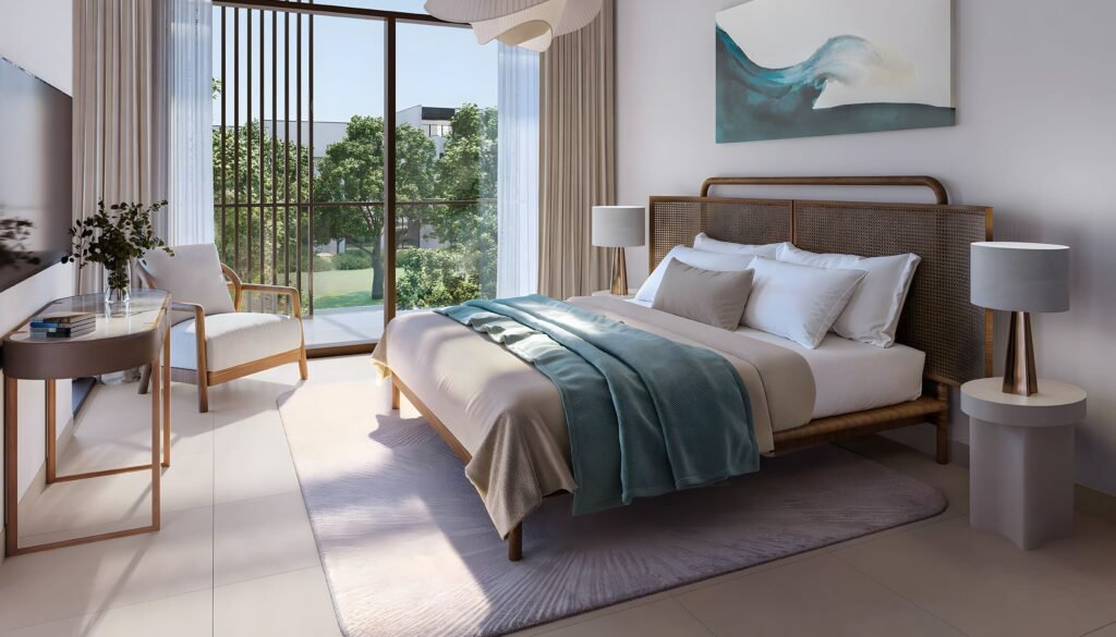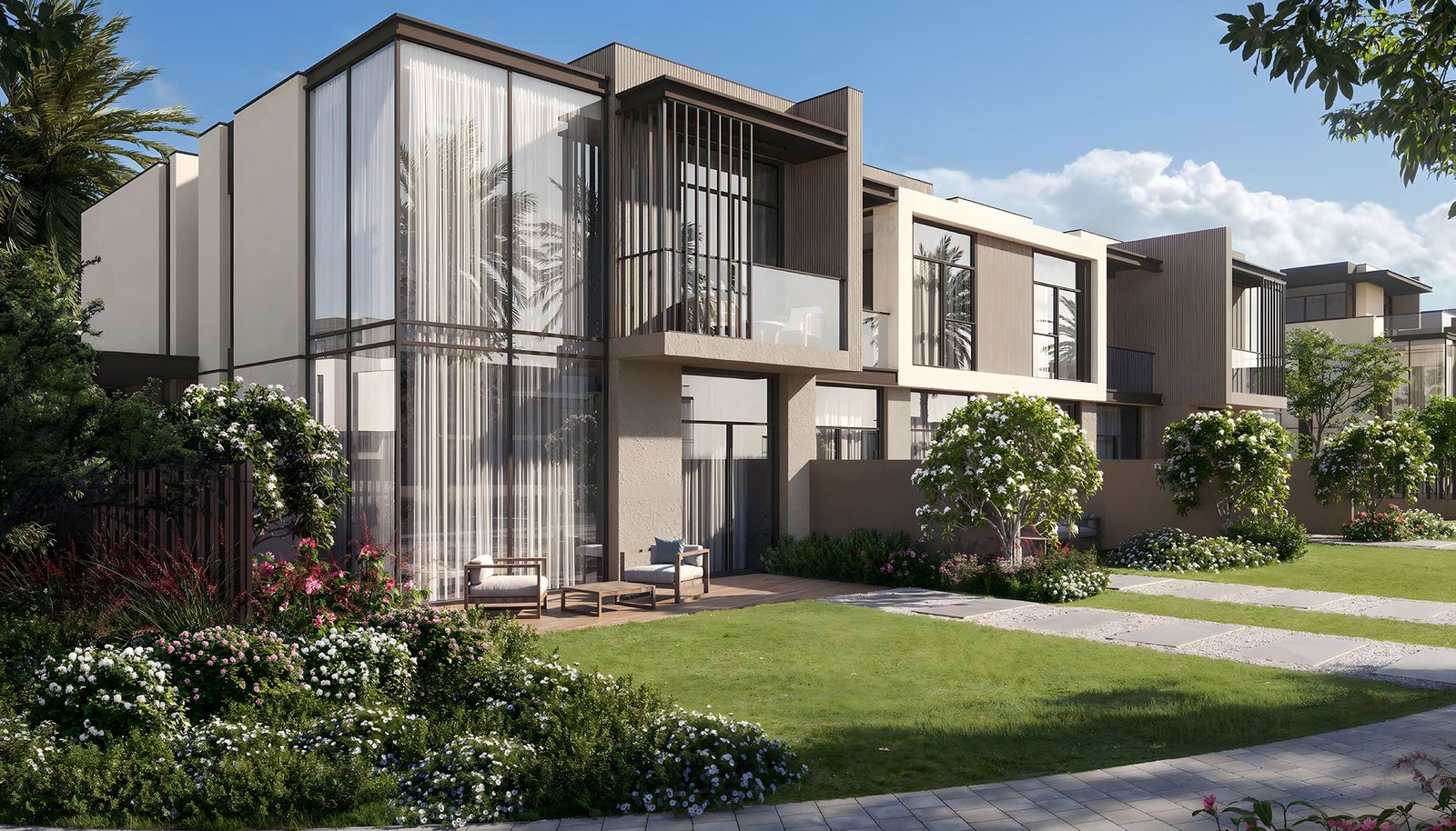 La Tilia features a limited selection of 3 and 4-bedroom townhouses, designed with elegant interiors, panoramic windows, and picturesque garden views. Prices start from AED 2.69M (USD 732K), with a convenient 60/40 payment plan offered by the developer.