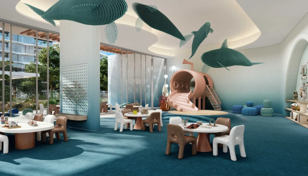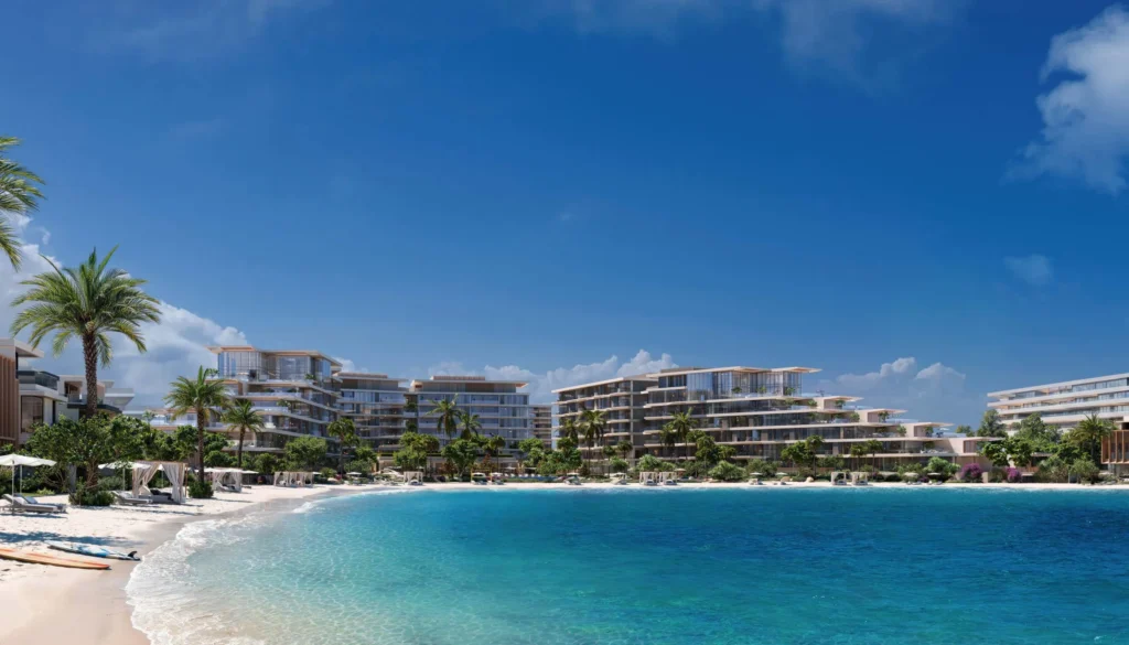 The community features 212 contemporary homes with open-plan layouts, floor-to-ceiling windows, and stunning views of the Arabian Gulf. Residences include 1 to 3-bedroom apartments ranging from 800 to 1,900 sq. ft., a limited selection of 4-bedroom townhouses of approximately 4,000 sq. ft., and exclusive signature penthouses of around 9,800 sq. ft. All homes enjoy prime positioning along the spine, with direct beach access and expansive open sea views.